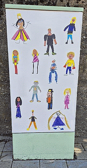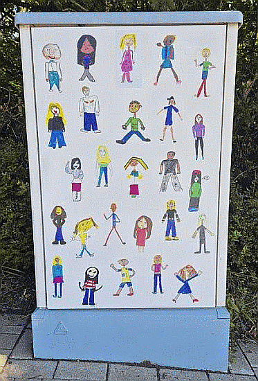 Von den Schulkinder der Adolf-Reichwein-Schule gestaltet und bemalte Verteilerkästen