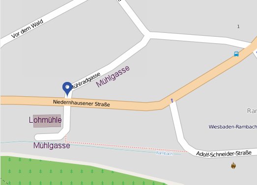 Die Mühlgasse kreutzt die Niedernhausener Straße und war/ist die einzige Straße zur Lohmühle. Im unteren Teil mündet die Mühlgasse in den Grundpfad. Zwischen Mühlgasse und Untergasse befand sich die 3te Quelle (Laufbrunnen).